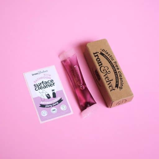 A powerful yet practical bathroom spray with a calming Ylang-Ylang scent. The plastic-free sachet dissolves in warm water to make 500ml of antibacterial cleaner for daily bathroom shine.